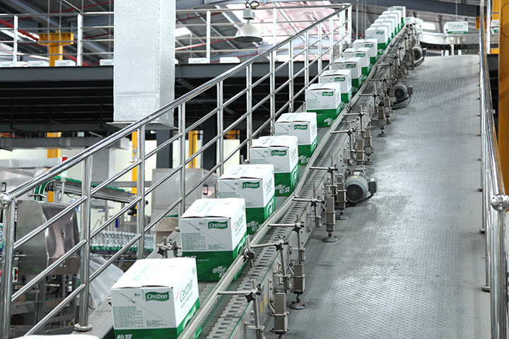 用于飲料生產(chǎn)線紙箱、塑箱、膜包的傳送。